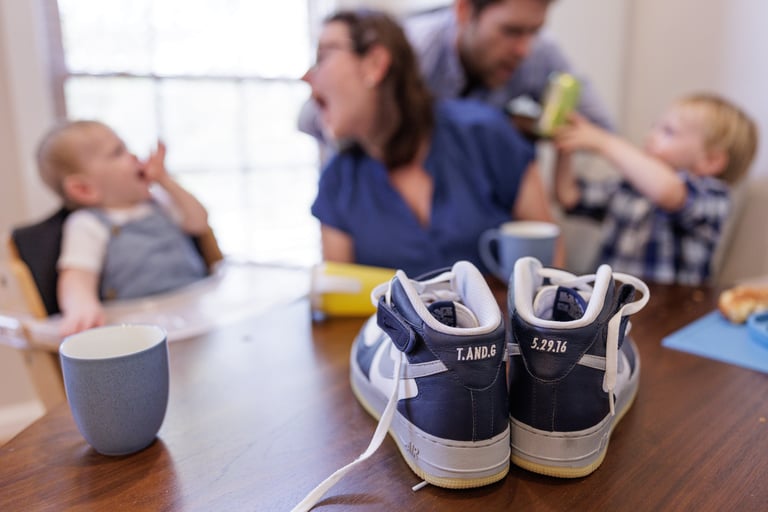 Then their first child came along, and everything changed in the best way. Our sessions suddenly included baby gear, unpredictable schedules, and a lot less quiet. The photos from that time show real life: tired smiles, learning curves, and the kind of joy that comes with figuring things out as you go. A few years later, their family grew again, and now they’re a family of four.